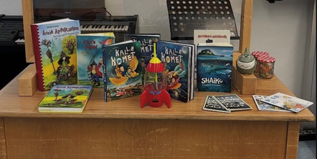 Den Anfang machte die Lesung für die Klassen 1 und 2, bei der Sue Glanzner aus ihrem Buch „Kalle Komet“ las. In der Geschichte geht es um den Jungen Paul, der eigentlich schlafen soll, aber einfach nicht müde ist. Da landet plötzlich Kalle Komet mit seiner roten Rakete vor dem Fenster und lädt Paul zu einer Reise durchs All ein. Zusammen treffen sie das Sternenmädchen Krissie Kristall und müssen den Regenbogen retten, dessen orangefarbener Streifen verschwunden ist. Eine fantasievolle, warmherzige Geschichte über Freundschaft, Mut und die Kraft der Fantasie.