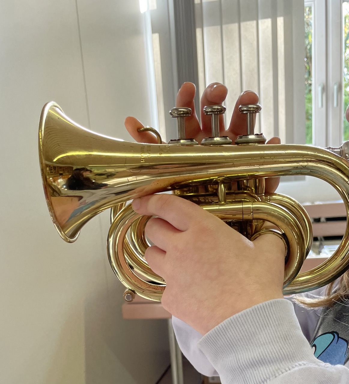 Nach einer allgemeinen Einführung durften die Kinder in drei Kleingruppen alle Instrumente ausprobieren und dabei ihre persönlichen Favoriten entdecken. Es gab eine Schlagzeuggruppe, eine Gruppe mit Blechblas- und eine weitere Gruppe mit Holzblasinstrumenten. Nach 20 min wurden die Gruppen gewechselt, so dass jedes Kind mindestens einmal mit jedem Instrument in Berührung kam.